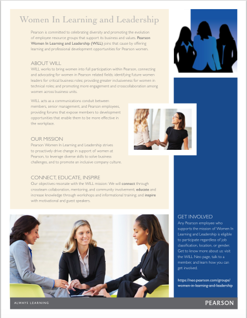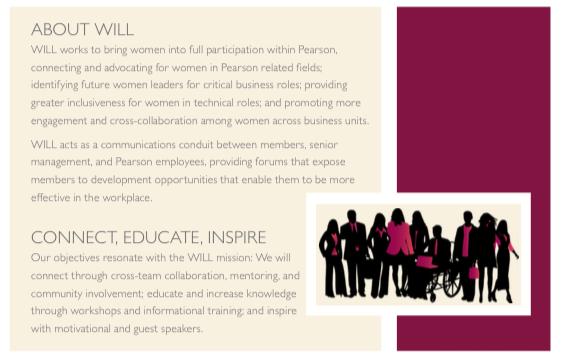 This initiative launched due to Pearson’s desire to advance diversity and inclusion efforts across the globe. In June 2013, Pearson Iowa campus was approached by the Head of Diversity and Inclusion efforts and the Denver Women in Leadership leaders through a formal focus group to determine if Iowa would be a right-fit for the launch of an inaugural chapter, shifting WIL from a single employee resource group (ERG) in Denver to a National chapter-based ERG. It was determined Iowa would be the right fit, and on August 1, 2013, Iowa was announced as the first chapter of the newly designed group, Women in Learning and Leadership.